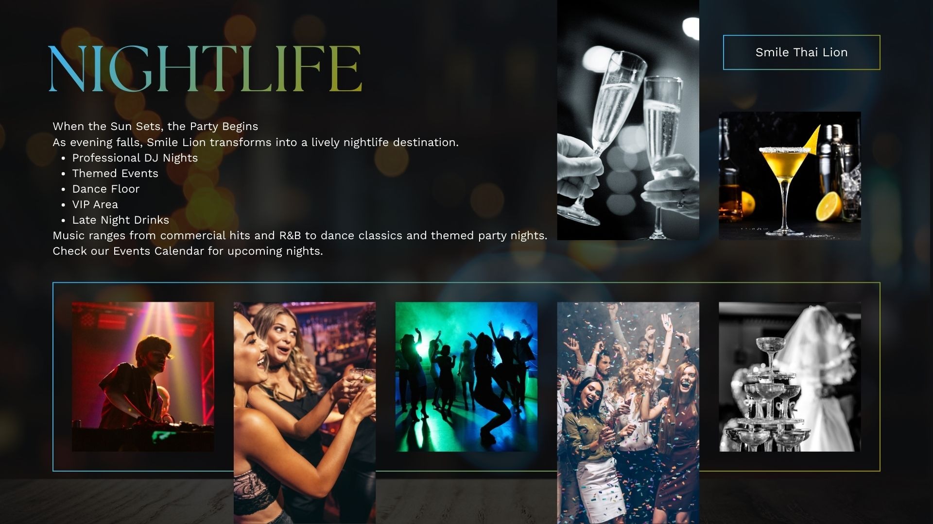 Experience the vibrant fusion of Thai flavors and electric nightlife under glowing gold neon lights.